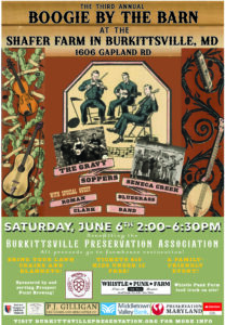 The Burkittsville Preservation Association host its annual concert series on June 6, 2026 from 2 PM – 6:30 PM at the H. W. Shafer Farm (1606 Gapland Rd, Jefferson, MD 21755) featuring an afternoon of old time string band music and blue grass from The Gravy Soppers and the Seneca Creek Bluegrass Band, along with special Roman Clark! Food and drink will be provided by the Whistle Punk Farm food truck and Prospect Point Brewing. Concert goers should bring lawn chairs and blankets. Tickets are $15; kids 12 and under are free! Gates open at 1 PM.